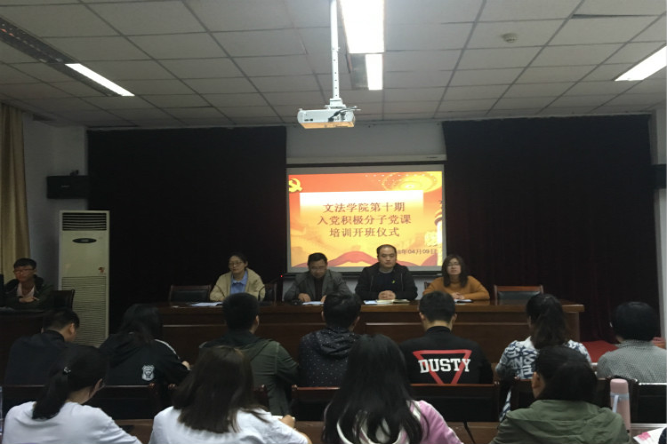 ,文法学院在学术报告厅举办第十期入党积极分子党课培训开班仪式。文法学院党委书记于祯、团委老师王占魁、田甜、张慧以及全院54名入党积极分子参加此次开班仪式。仪式由田老师主持。