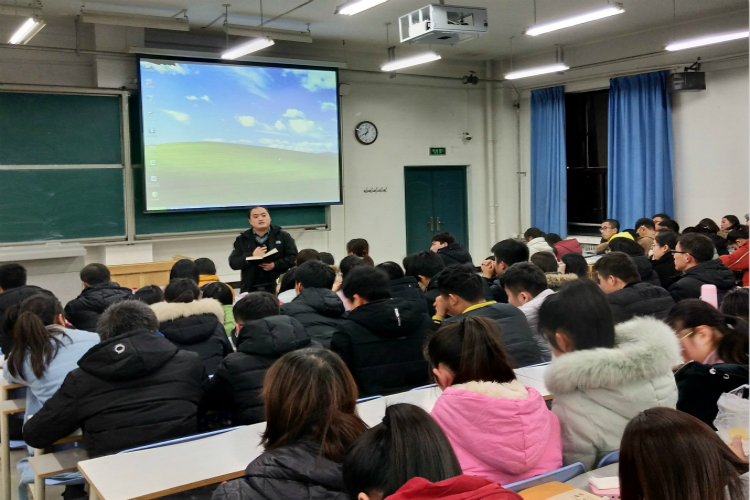 为贯彻落实十九大精神,积极推进诚信建设,发挥学生“励志模范”的榜样作用,12月19日,文法学院在十合八教室举办“艰苦奋斗,自强不息”主题宣讲报告会。团委副书记王占魁、辅导员田甜、张慧老师及全体接受资助学生共二百余人参加此次报告会。