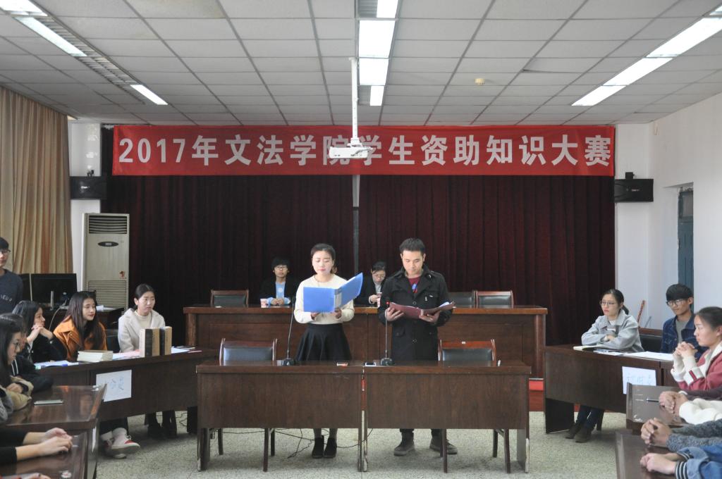 为做好我院学生资助工作,普及相关资助知识,培养大学生诚信意识,11月25日,文法学院在学术报告厅举办“诚信校园行”学生资助知识大赛,经过初赛的激烈角逐,七个优胜班级于今日进行终极对决。