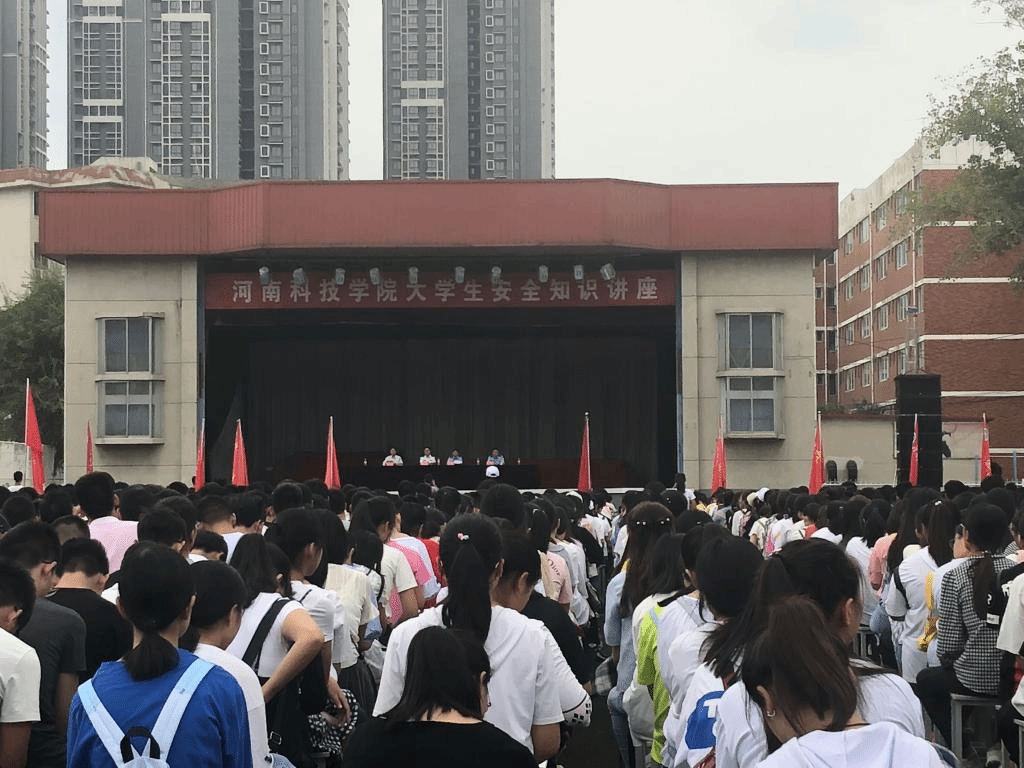 9月13日下午,我校在西操大舞台前进行大学生安全防范教育培训,市公安局中心民警和市消协专家受邀对我校学生进行防诈骗及消防安全知识培训,我院2018级全体新生积极参与本次活动。