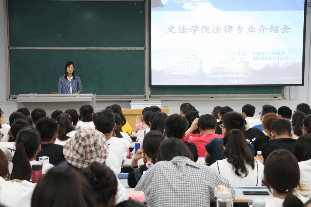 为使新生更好地了解自己所学专业,同所在专业的老师进行沟通交流,9月12-14日,文法学院分别在三合一、九合一召开中文、法学专业介绍会。会议由文法学院副院长王振军主持,中文系老师高芳艳、法律系老师王静然主讲,2018级全体新生参与此次专业介绍会。