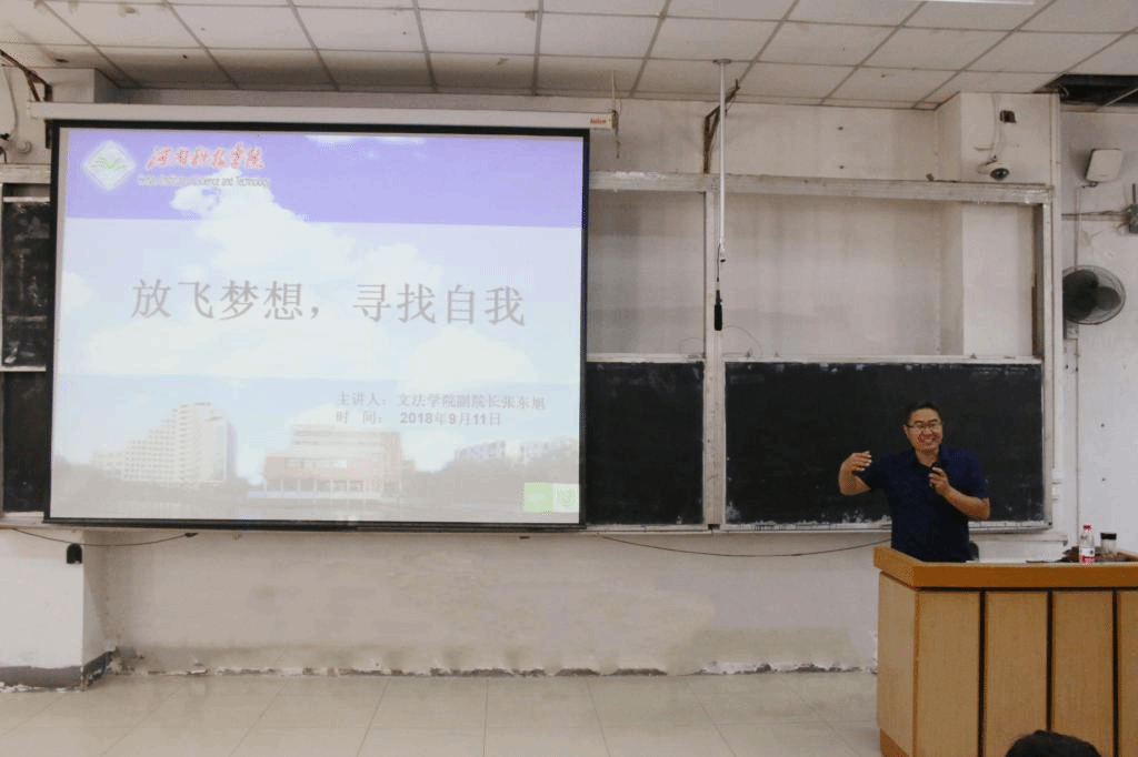 9月11日上午,文法学院在零合一教室举办“放飞梦想,寻找自我”讲座。讲座由文法学院副院长张东旭担任主讲人,文法学院2018级全体新生参加此次讲座。