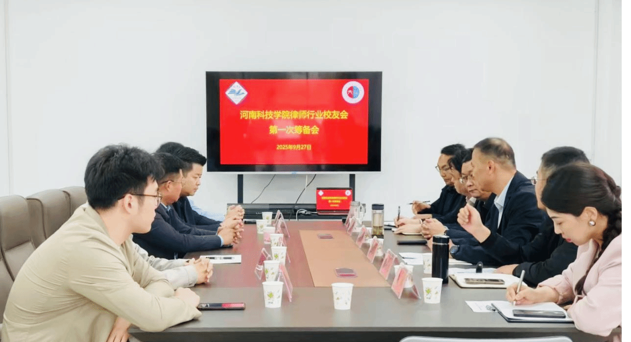 2025年9月27日下午,河南科技学院法律行业校友会成立大会第一次筹备会在文法学院会议室顺利召开。会议由校友办副主任张海民主持,文法学院党委书记宗辉、院长张东旭、副院长张希平出席会议,与法律行业校友代表齐聚一堂,共同商讨法律行业校友会筹建事宜。