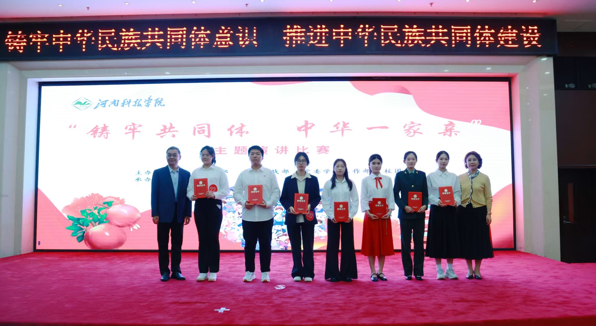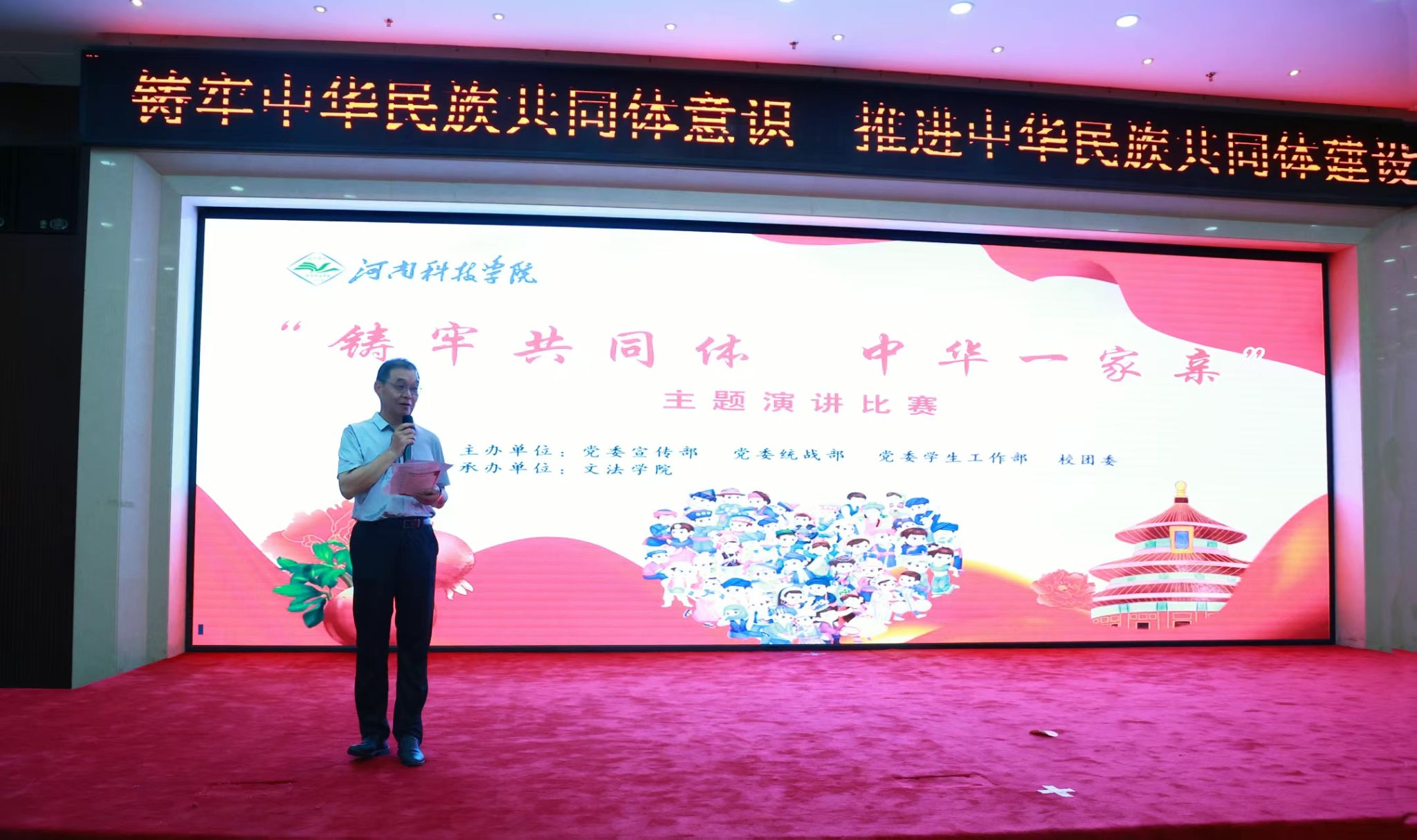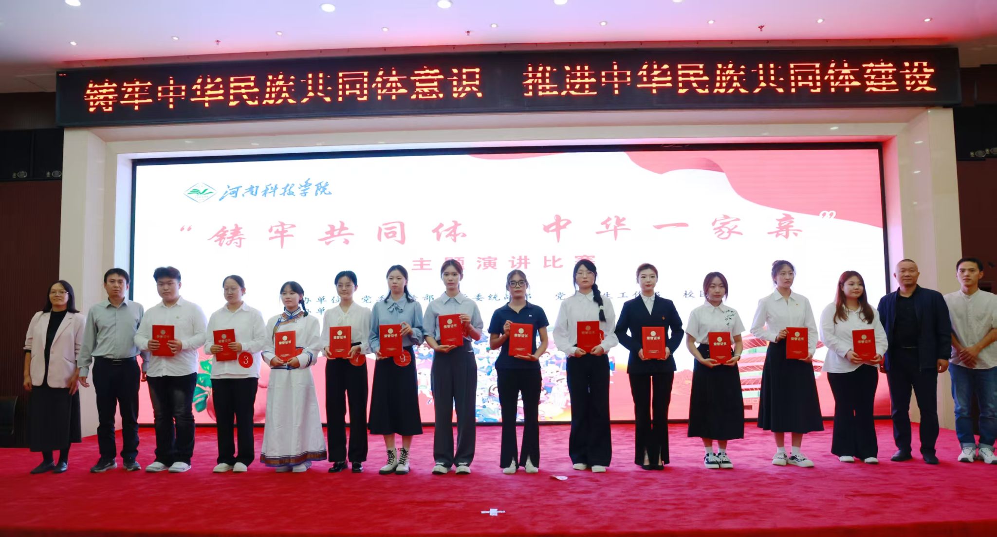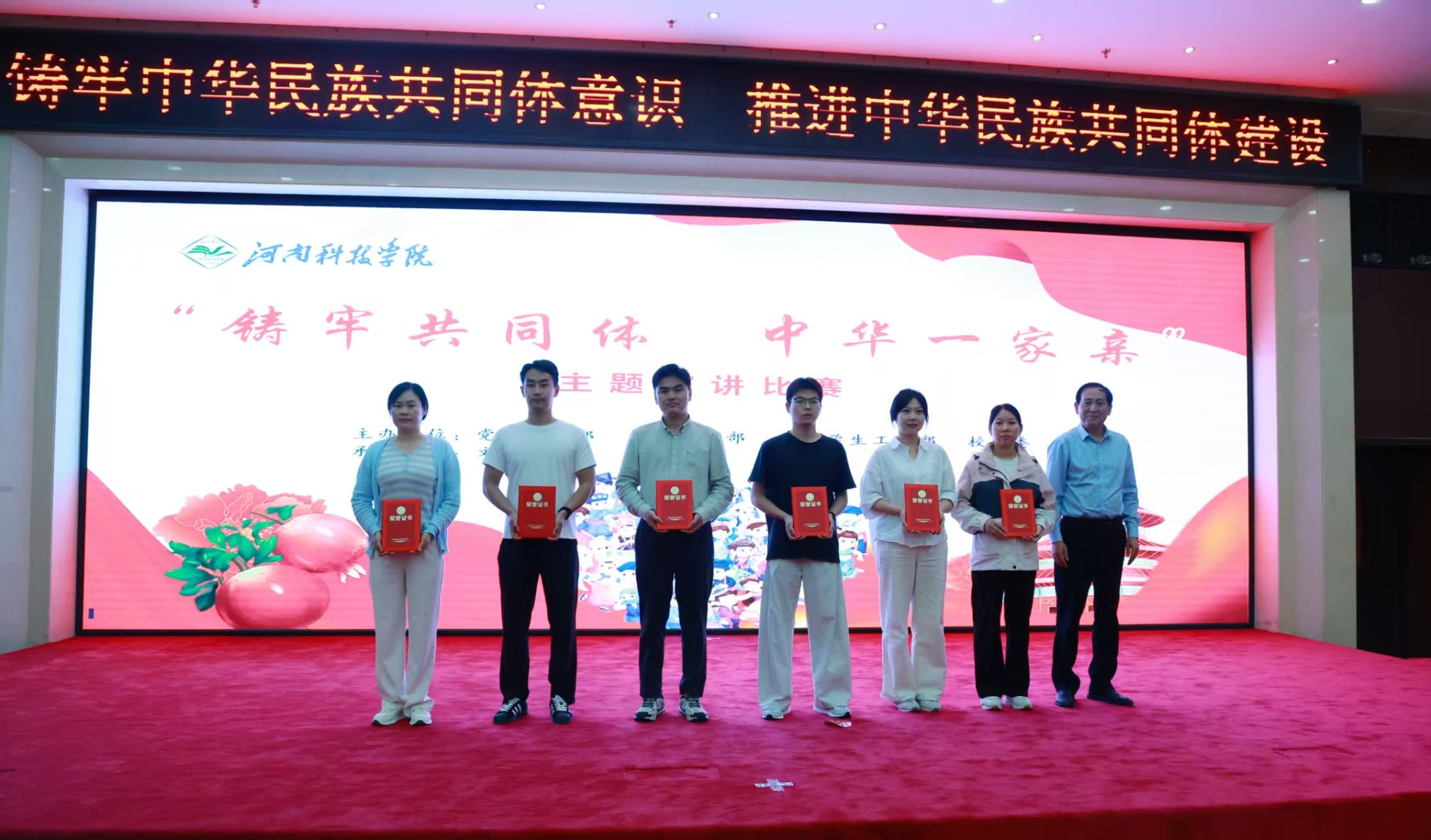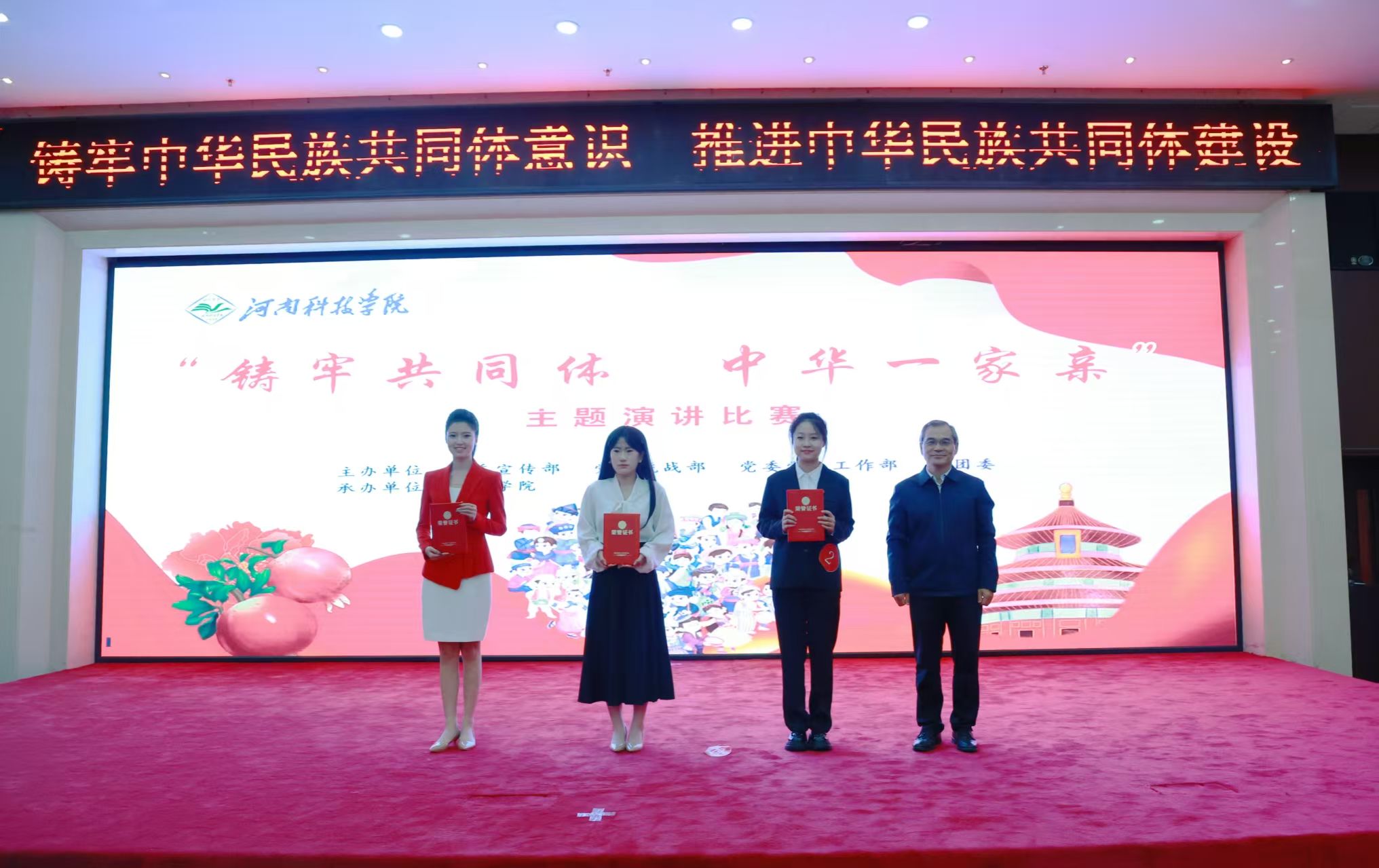 9月29日下午,由党委宣传部、党委统战部、党委学生工作部、校团委主办,文法学院承办的河南科技学院“铸牢共同体 中华一家亲”主题演讲比赛在办公楼308举行。校党委副书记王庆兵出席并为获得一等奖的选手颁奖。