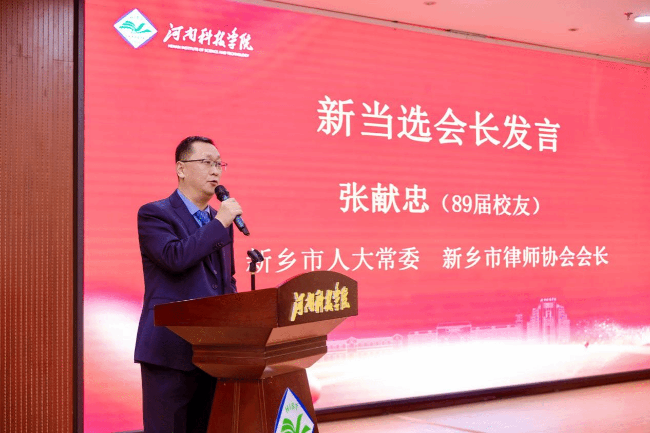 新当选会长张献忠在发言中表示,将秉承母校精神,认真履行职责,凝聚法律行业校友的智慧和能量,积极搭建交流平台,促进资源共享,助力法治人才培养和母校事业高质量发展。