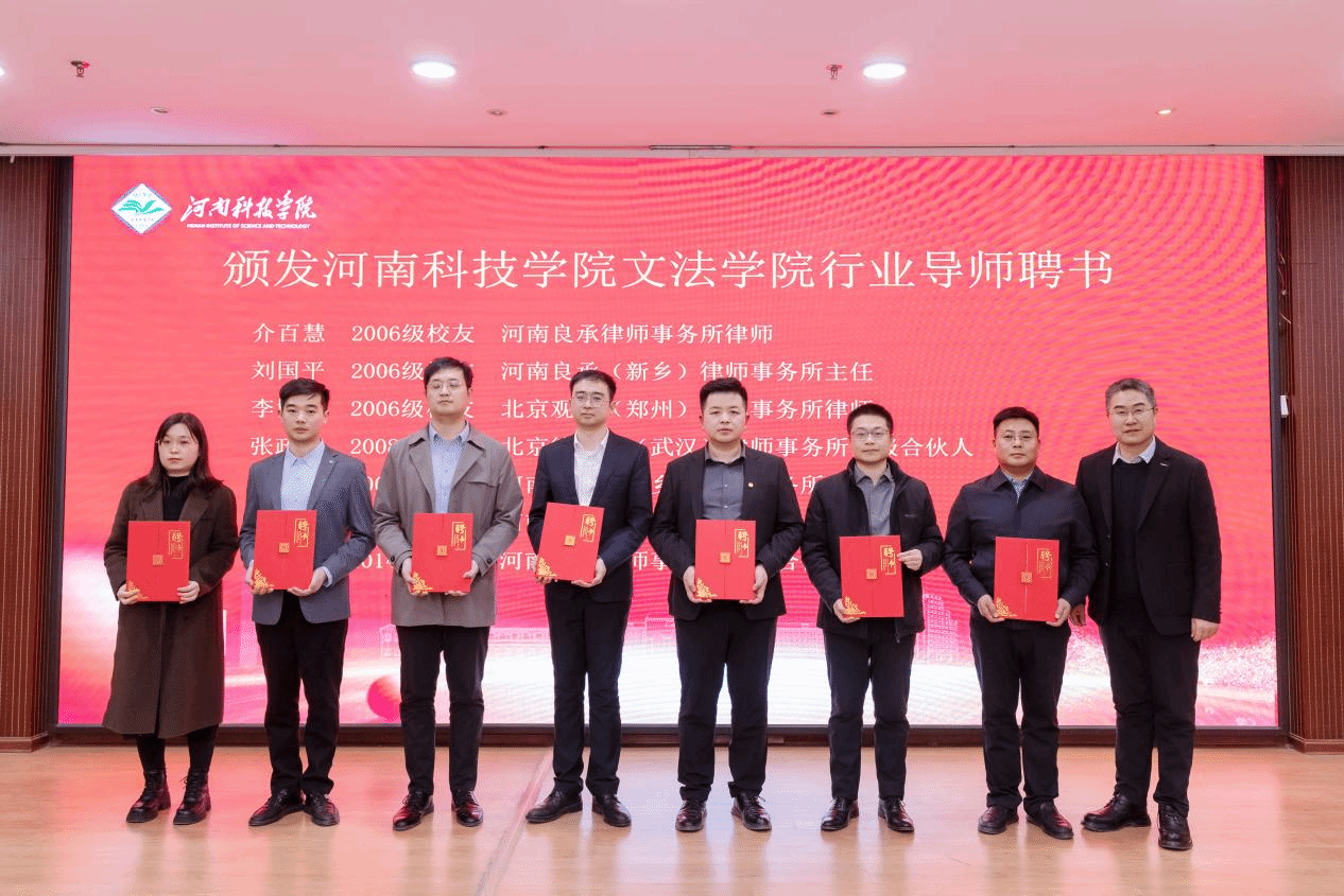 大会听取了校友会筹备工作报告,宣读了《关于同意成立河南科技学院法律行业校友会的决定》,表决通过了第一届理事会人员名单,并向校友会及成员授旗授牌、颁发聘书。