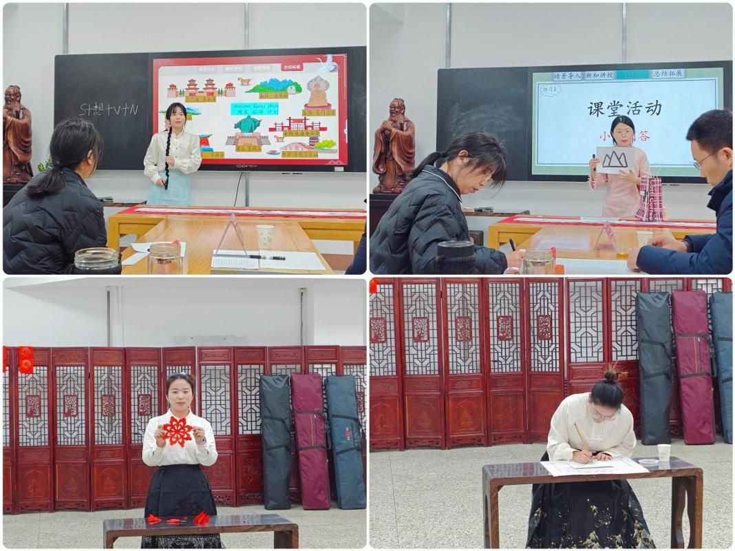 比赛前一个月,研究生在任课教师宋培杰、刘晏齐的带领下,全力以赴备赛,反复研磨教学设计,扎实开展模拟演练。比赛设3分钟说课、10分钟教学试讲与2分钟才艺展示三个环节。试讲中,研究生们从容自信,教态亲和,讲授声情并茂,教学内容层次分明、逻辑连贯,教学方法新颖多样,有效使用数字技术,与台下师生积极互动。才艺展示环节,选手们表演了民族乐器、舞蹈、国画、剪纸等项目,体现了过硬的综合素质,也彰显出国际中文教育的专业特色。