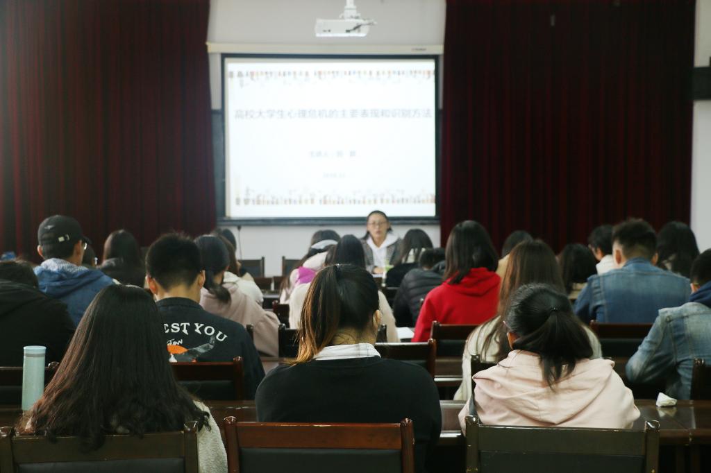 11月8日,文法学院团委老师田甜在506学术报告厅作了“高校大学生心理危机的主要表现和识别方法”主题讲座,文法学院全体心理委员、宿舍安全员共40余人聆听了此次讲座。