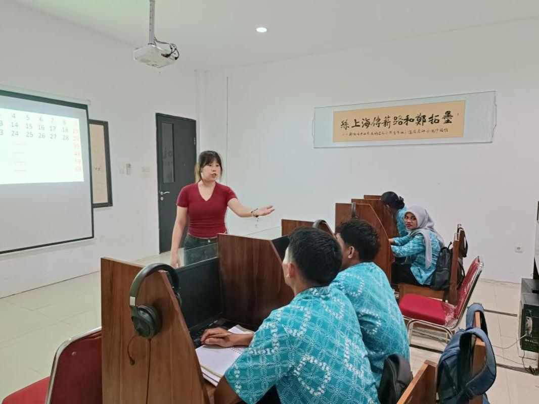 我是河南科技学院文法学院22级汉语国际教育专业本科生王佳怡,能够来到印度尼西亚进行中文教学,得益于学校提供的宝贵机会。这是一场记录我逐渐从“扮演老师”到“成为老师”,实现蜕变的成长之旅。从初登讲台时紧张得语无伦次和刻意摆出的教姿教态,到后来的从容面对,一切随课堂节奏自然发生。我甚至与学生建立起了独属于我们的无声默契,一个眼神,一个手势能立刻让走神的学生恢复专注,也会引来一片踊跃的手臂,或引起他们的重新思考。这段时间,我切身感受到了他们从最初的沉默,到后来争相举手的转变。而面向当地教师教授中文的特别经历,则像一面镜子,让我克服了长久以来作为学生对教师身份的敬畏,学会了在平等的对话间传递知识。“这段海外旅程,让我真切体悟到一份跨越国界的‘教学相长’的深意 —— 它不仅让我在历练中遇见更好的自己,更让我读懂了‘美美与共,天下大同’的鲜活真谛。”